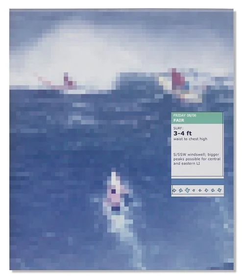 On every computer there’s this stuff. I knew that I wanted to use an inventory of images as a balance against that Dante-esque, potential moroseness of the Goldman Sachs thing. Not to hide the Goldman Sachs reality, but to counter it. In Le Luxe there’s a sort of musical introduction that happens, and then it becomes a big, epic tune. The counter figure is the surf JPEG as an outro in the book composition, a little bit like a "wave after wave" kind of thing.